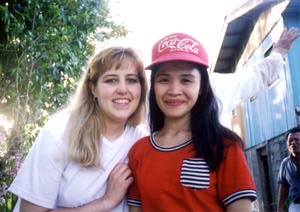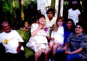 Susan poses with Arlene (left) and mom, Susan and Alex mingle (right)