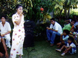I dance with a little one (left) and Emelda sings after changing her clothes (right)